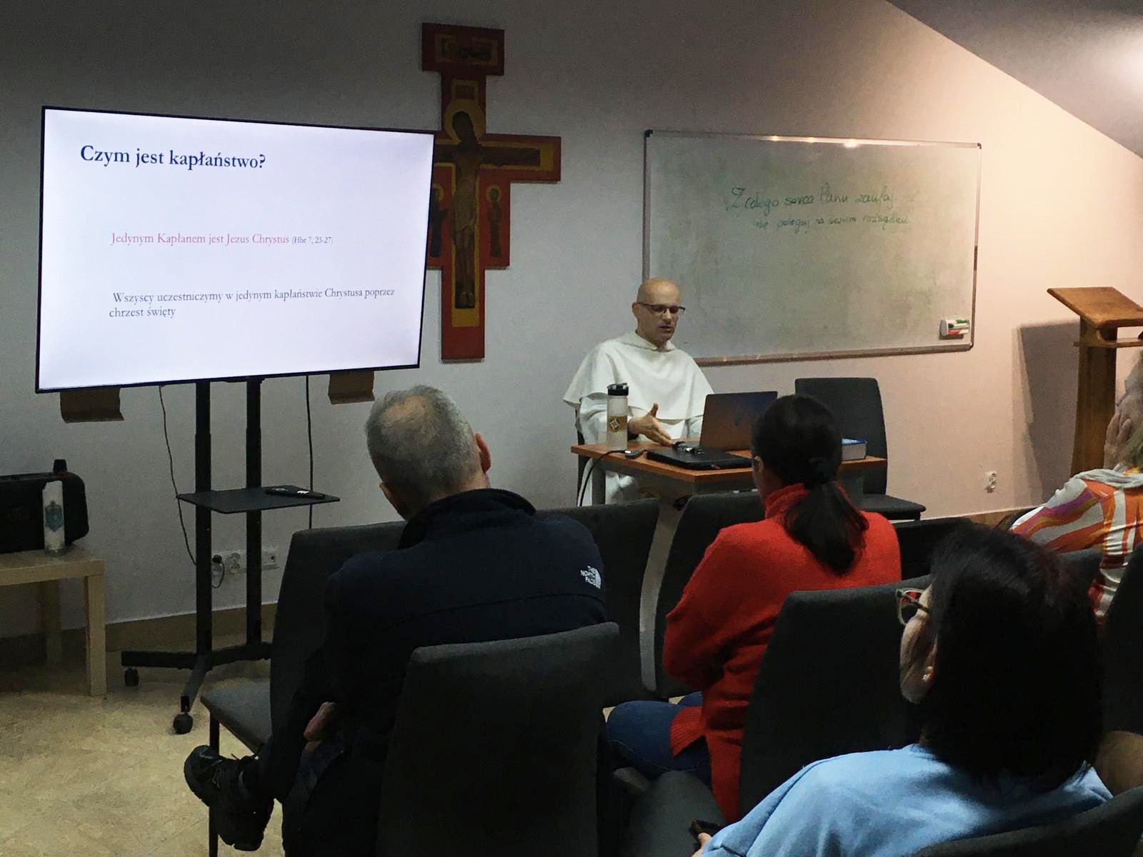 Tym razem tylko jedno zdjęcie z ostatniego spotkania. Jedno, ale z widocznym na ekranie najważniejszym, podsumowującym zdaniem: „Wszyscy uczestniczymy w jedynym kapłaństwie Chrystusa poprzez chrzest święty”.